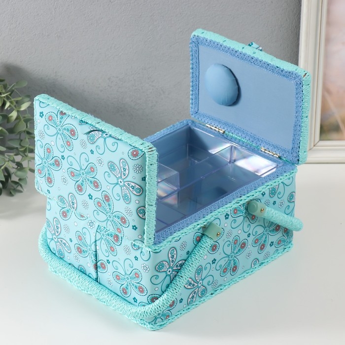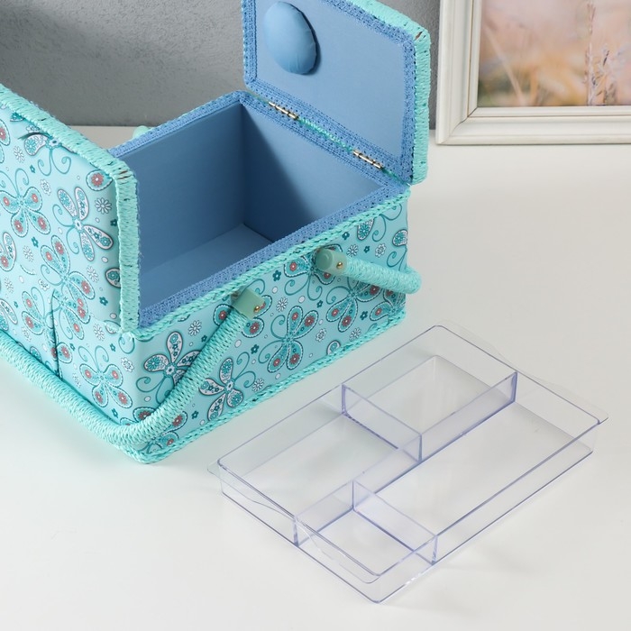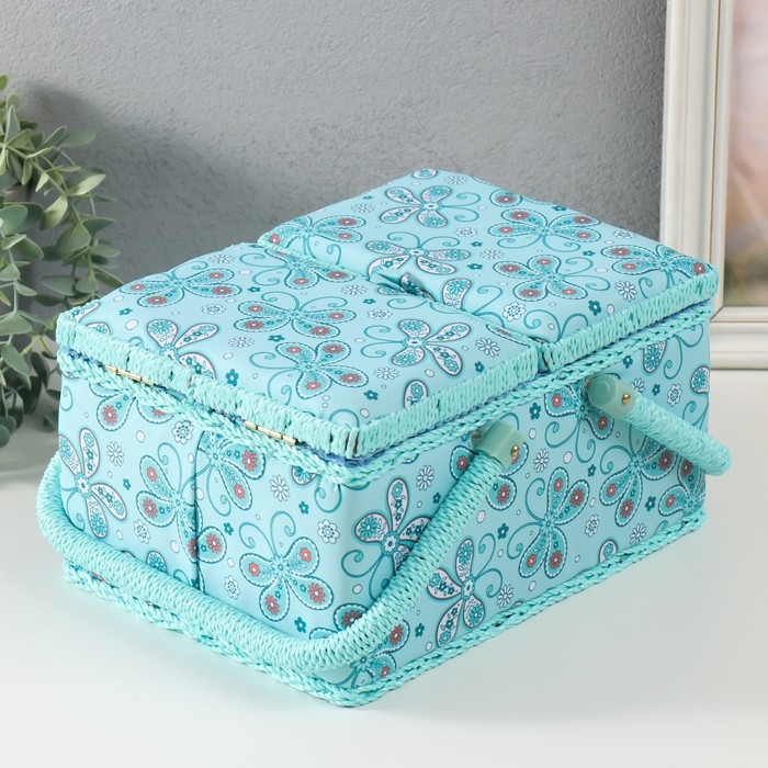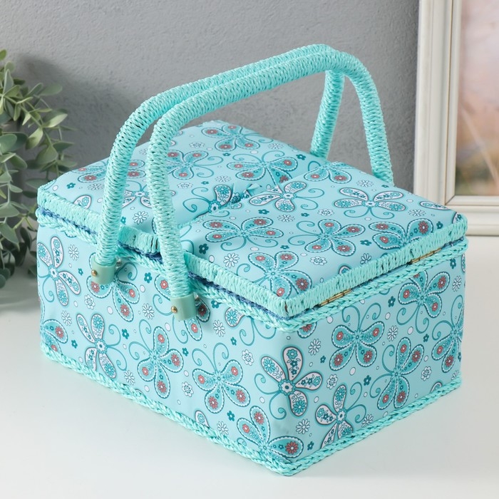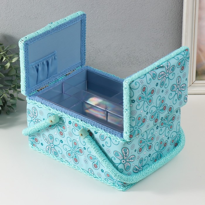 Шкатулка для рукоделия "Бабочки и цветочки на голубом" 19х26х14,5 см