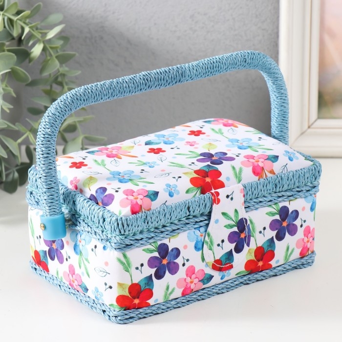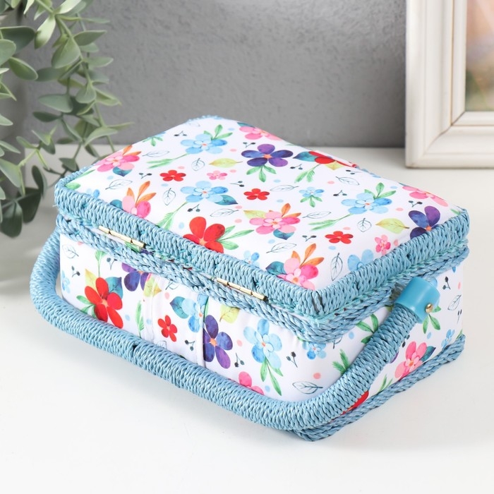 Шкатулка для рукоделия "Цветение на белом" 18х12х9,5 см