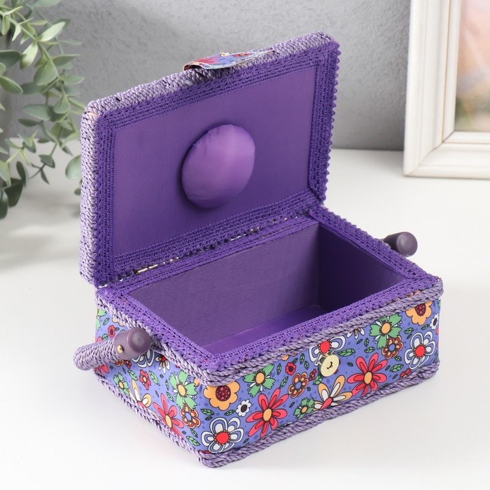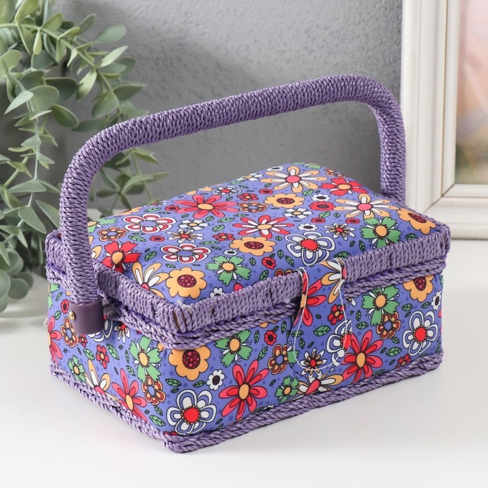 Шкатулка для рукоделия "Нарисованные цветы на синем" 18х12х9,5 см