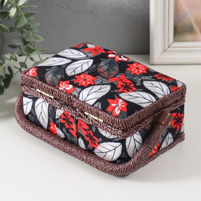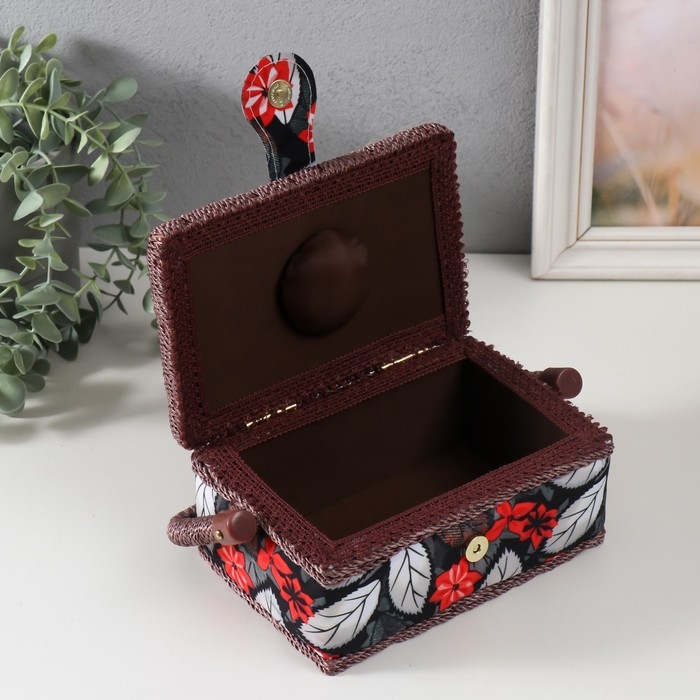 Шкатулка для рукоделия "Пуансеттия на чёрном" 18х12х9,5 см