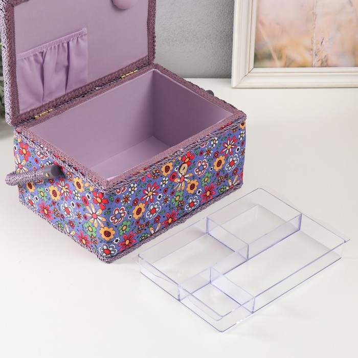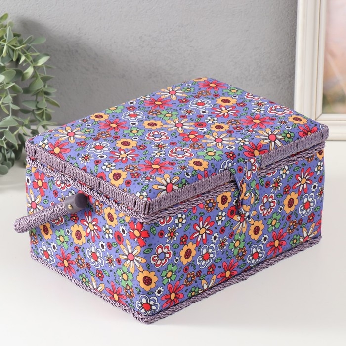 Шкатулка для рукоделия "Нарисованные цветы на синем" 19х26х14,5 см