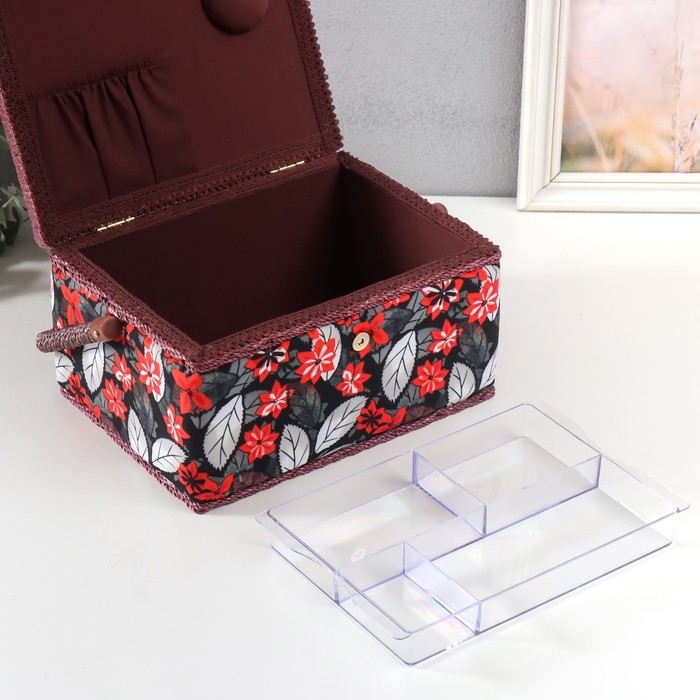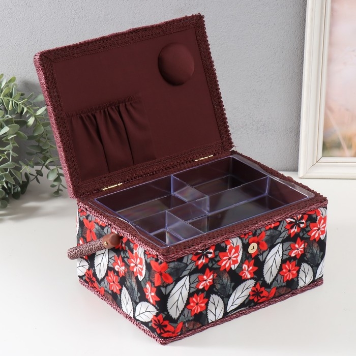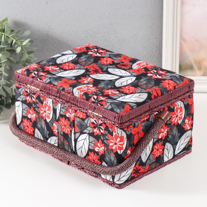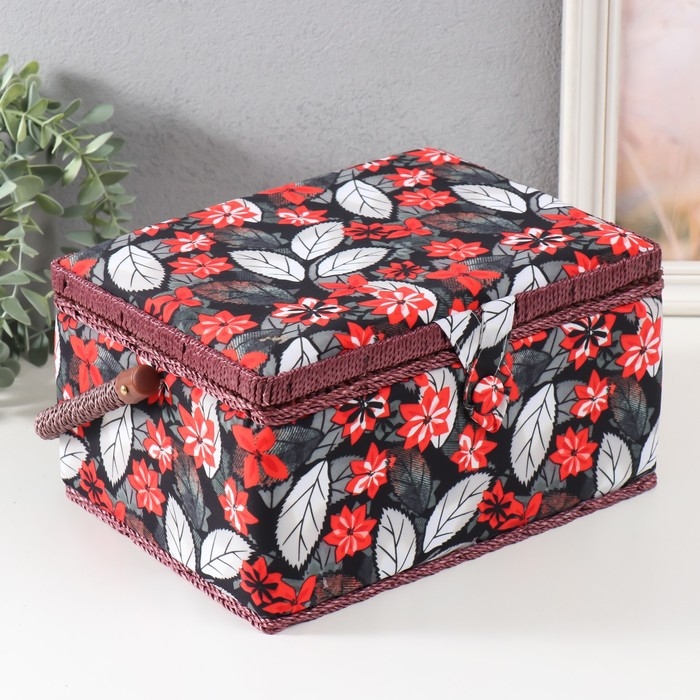 Шкатулка для рукоделия "Пуансеттия на чёрном" 19х26х14,5 см