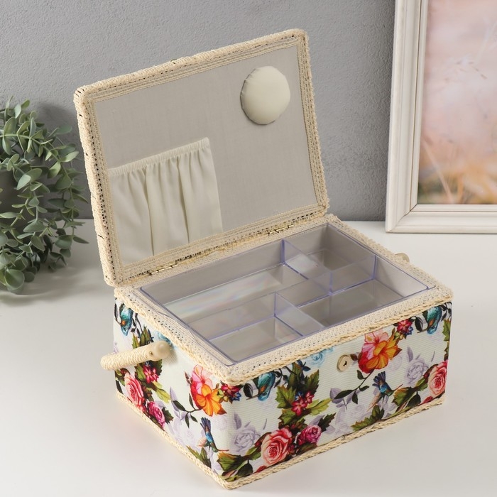 Шкатулка для рукоделия "Птицы в розовом саду" 19х26х14,5 см