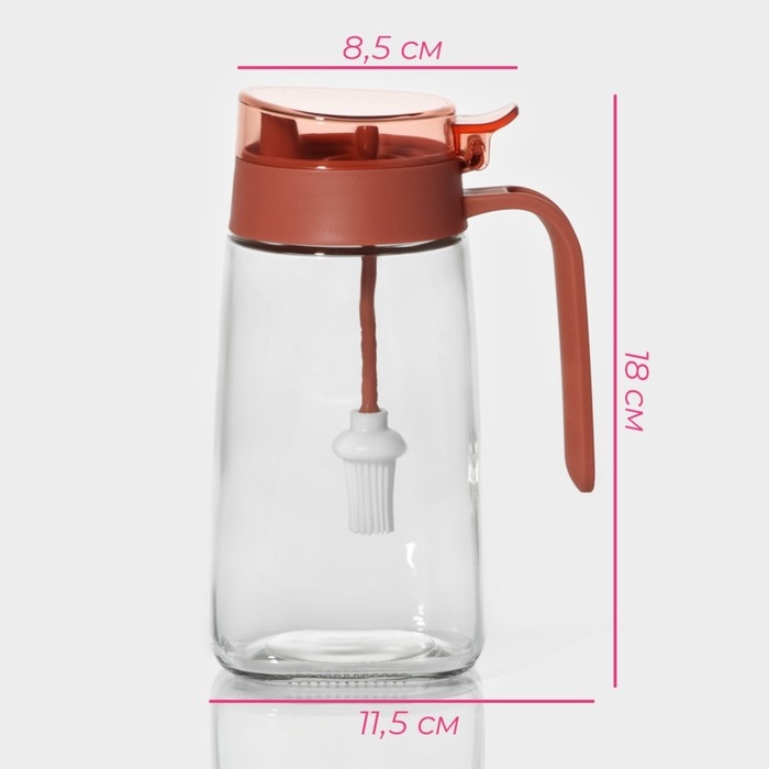 Бутылка стеклянная для масла с кисточкой Доляна «Коралл», 600 мл, 8,5×7×18 см