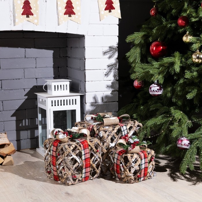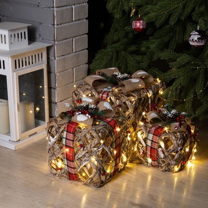 Светодиодная фигура «Подарки с шишками» 15, 20, 25 см, текстиль, металл, батарейки ААх2 (не в комплекте), свечение тёплое белое