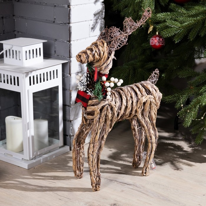 Светодиодная фигура «Олень» 32 × 60 × 10 см, текстиль, металл, батарейки ААх2 (не в комплекте), свечение тёплое белое