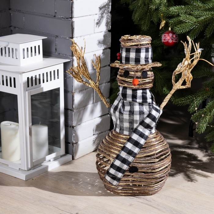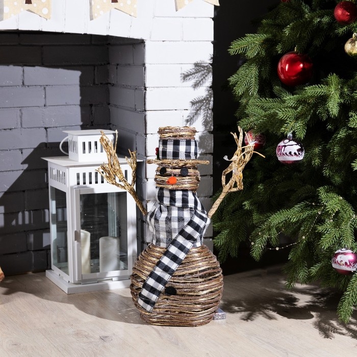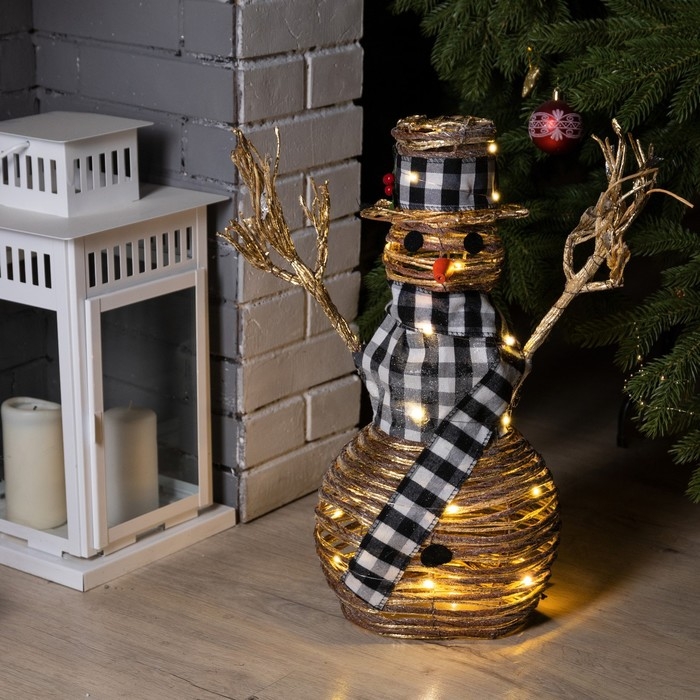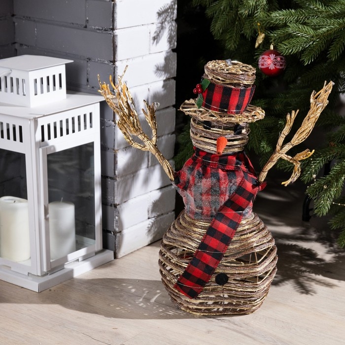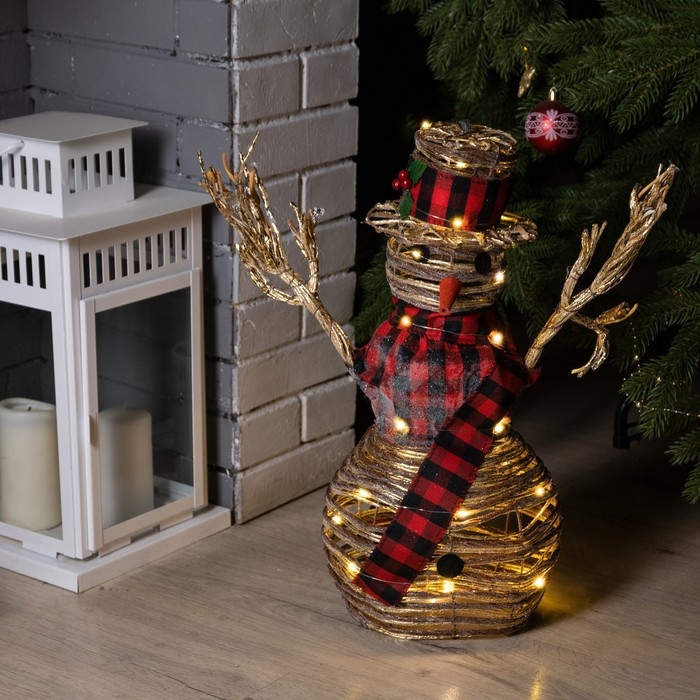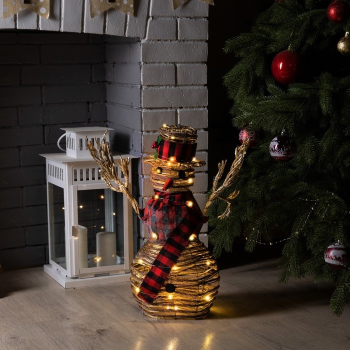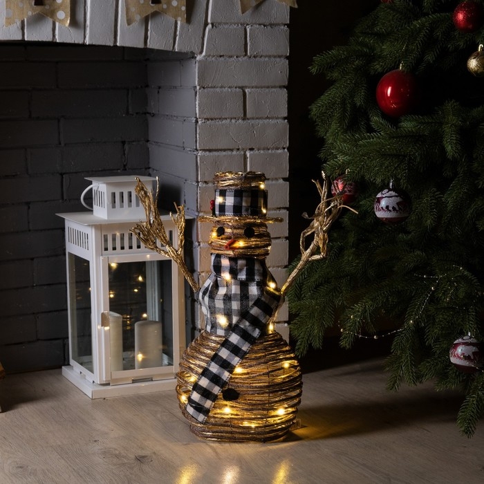 Светодиодная фигура «Снеговик» 24 × 50 × 15 см, текстиль, металл, батарейки ААх2 (не в комплекте), свечение тёплое белое