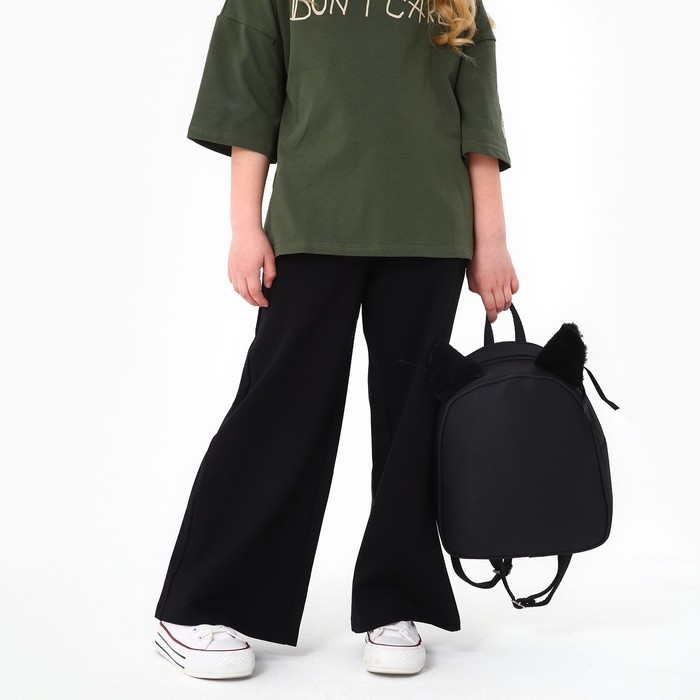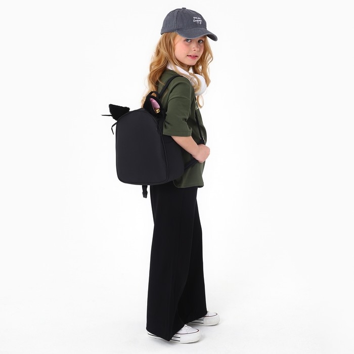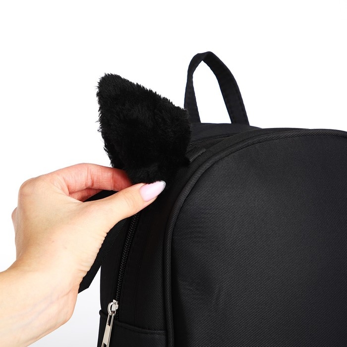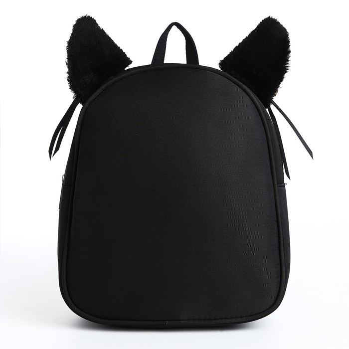 Рюкзак школьный текстильный с ушками на заколках, 27х23 см, чёрный цвет