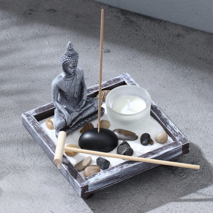 Сад камней с подставкой для благовоний "Мечта", 12,5х12,5х13см, бетон
