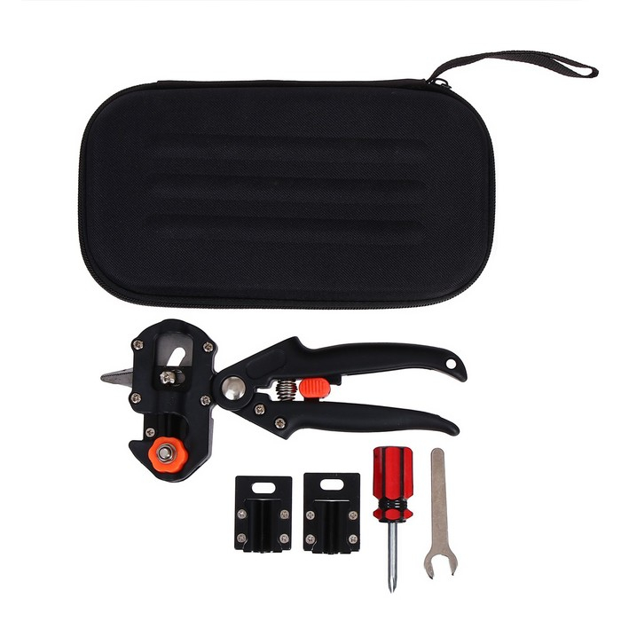 Набор профессиональный: секатор прививочный, 2 насадки, отвёртка, гаечный ключ, в чехле, Greengo