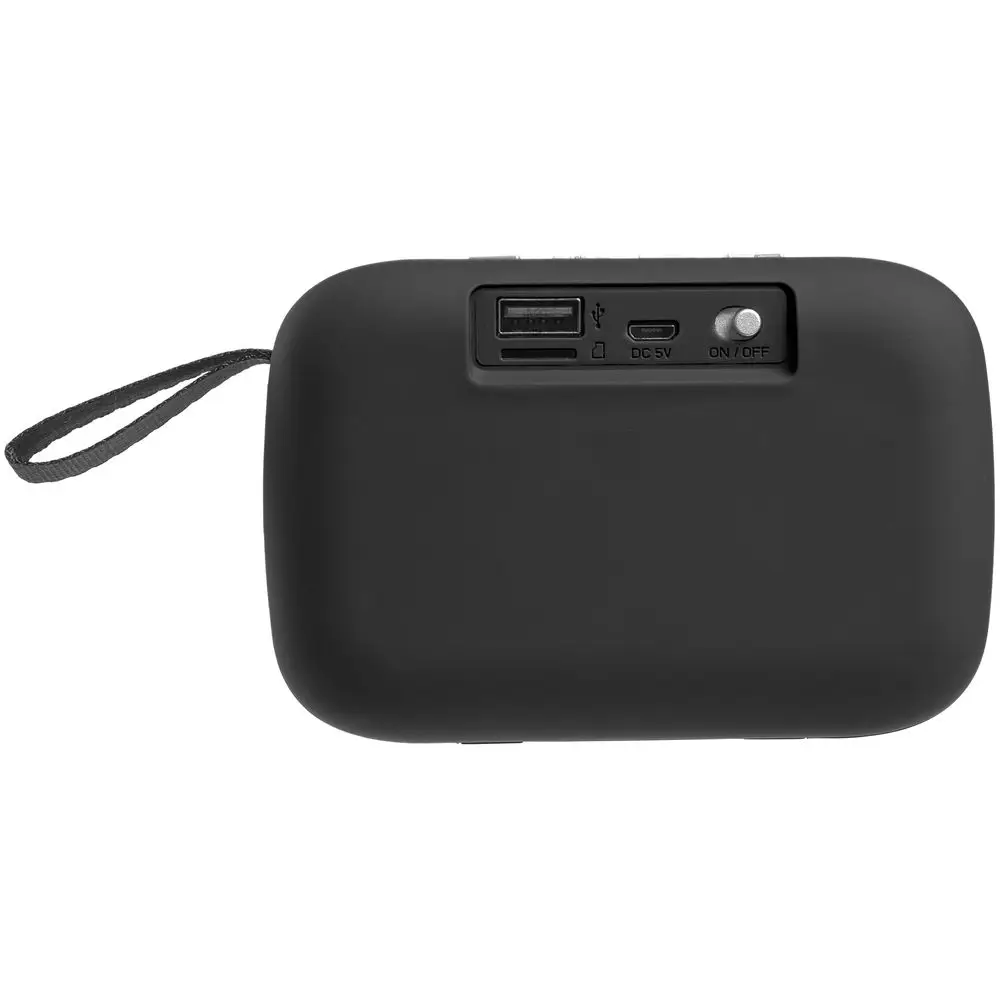 Колонка Borsetta умеет проигрывать музыку через Bluetooth, с USB-флешки, карты microSD и принимать радиоволны в FM-диапазоне. Благодаря дополнительному басовому излучателю колонка звучит объемно и сочно, а современный дизайн корпуса с покрытием софт-тач и фактурной акустической тканью не позволит ей остаться незамеченной.