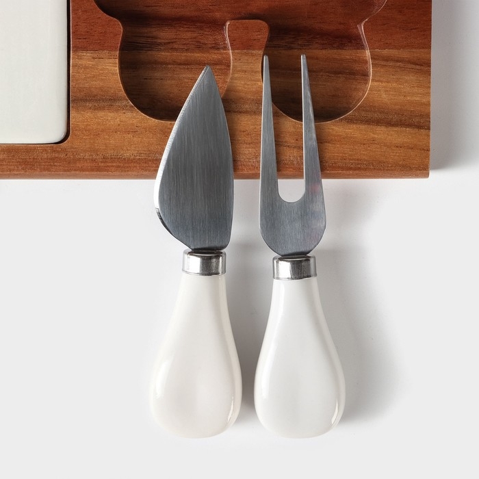 Набор для подачи сыра «Мрамор», 2 ножа, акация
