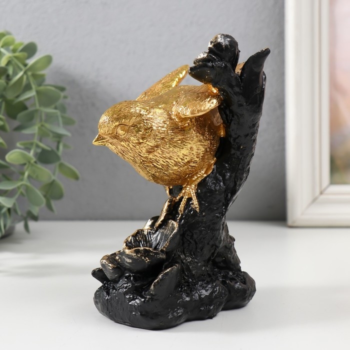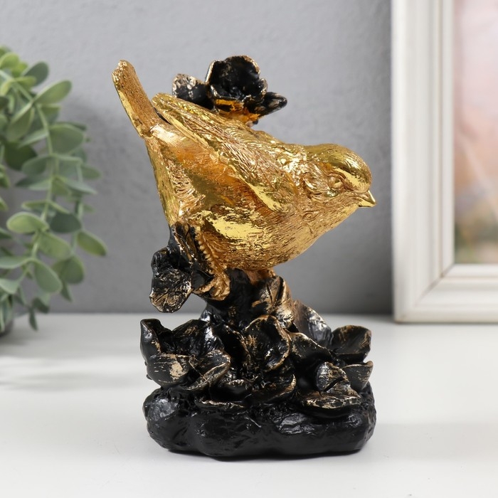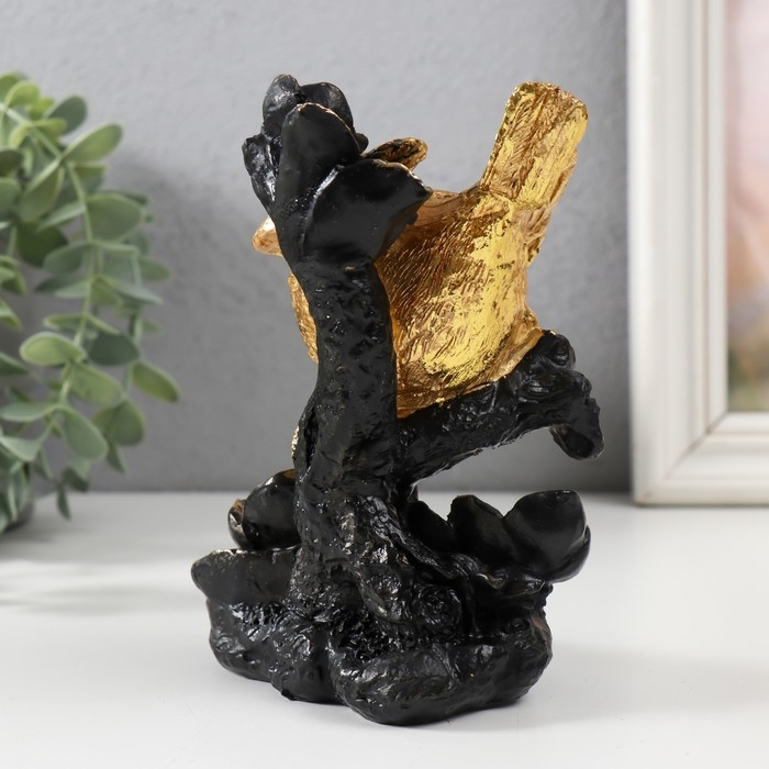 Сувенир полистоун "Золотая птичка в цветах" 10х6х15 см
