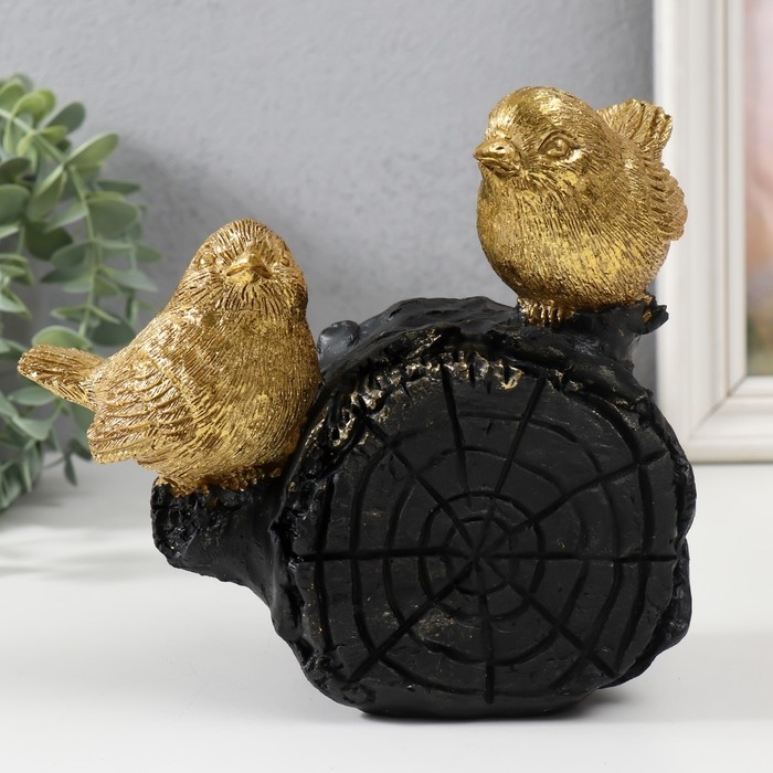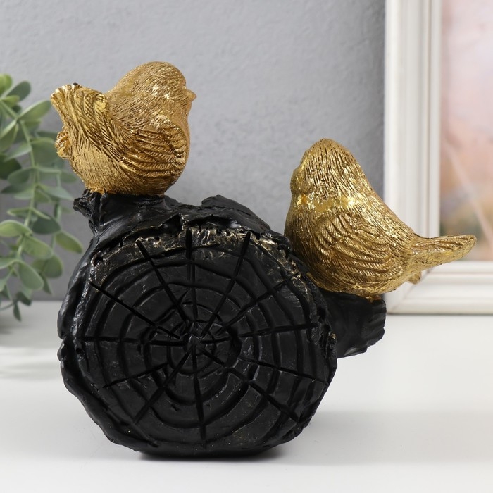 Сувенир полистоун "Две золотые птички на бревнышке" 18х9х17 см