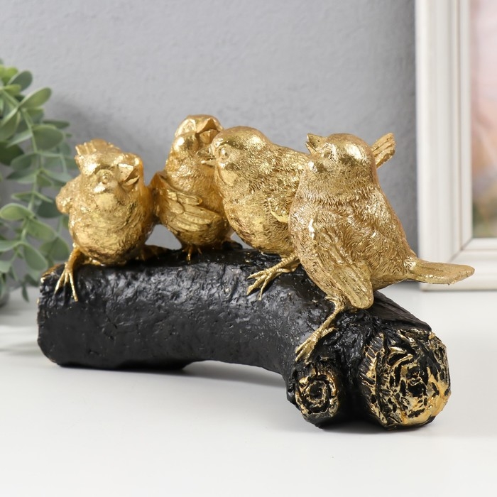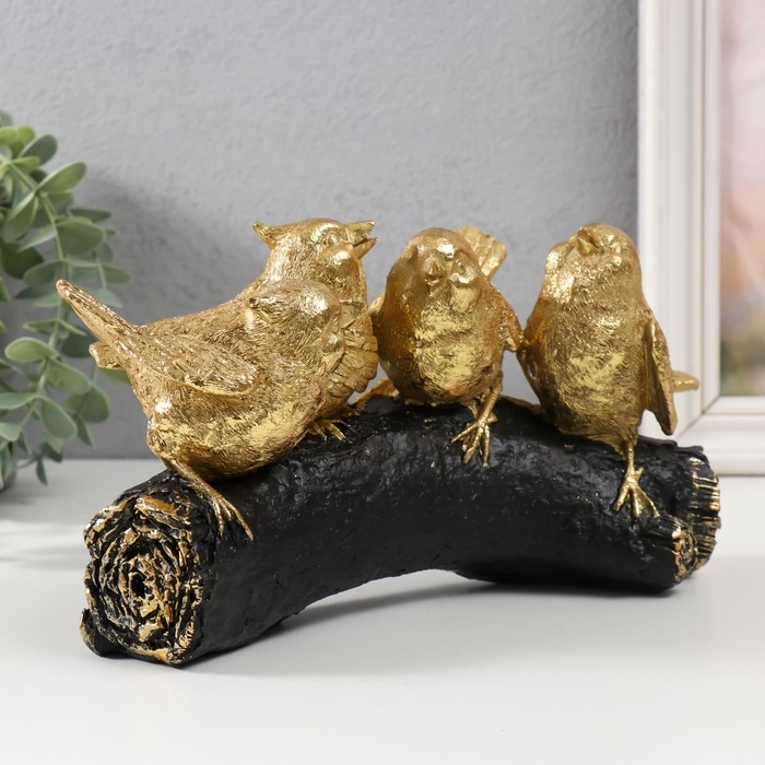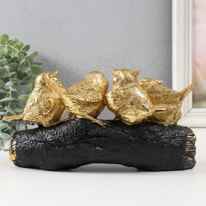 Сувенир полистоун "Четыре золотых птички на ветви" 22х6х13 см