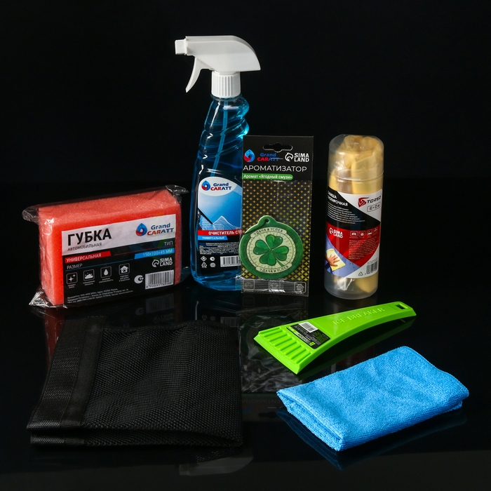 Подарочный набор автолюбителя Grand Caratt "Зимний": Скребок, размораживатель замков, ароматизатор, смазка