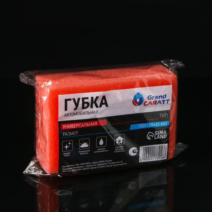 Автомобильная губка Grand Caratt предназначена для лёгкого и эффективного мытья кузова и салона автомобиля, а также для чистки бытовых приборов и других поверхностей.