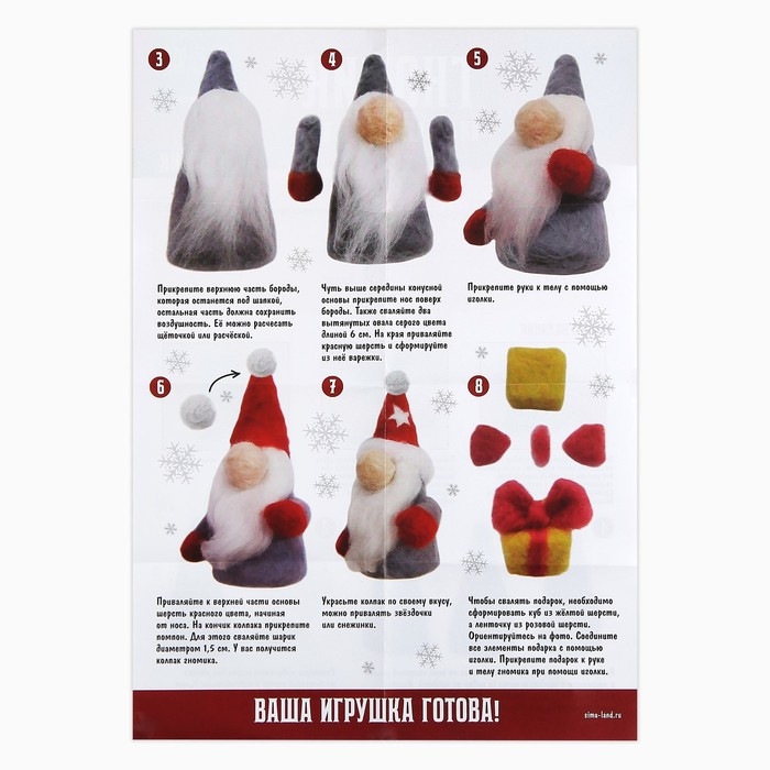 Валяние из шерсти на новый год. Игрушка своими руками «Гномик с подарком», новогодний набор для творчества