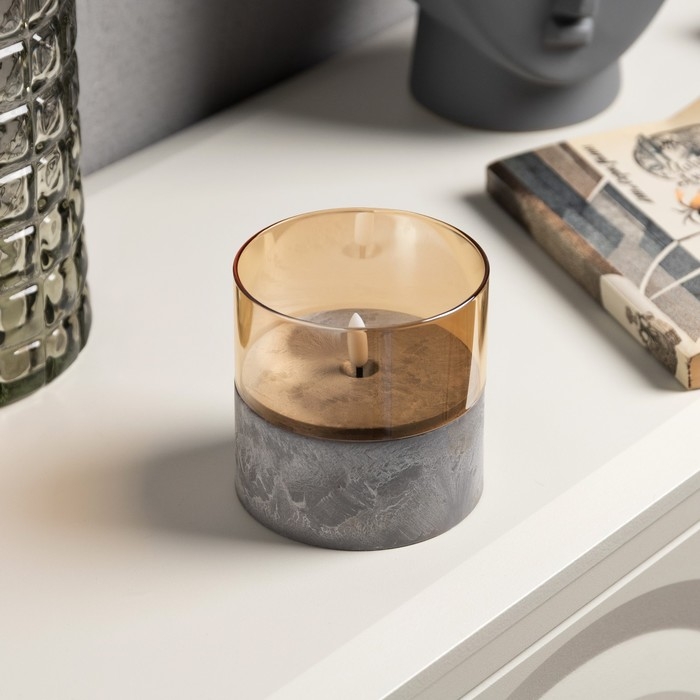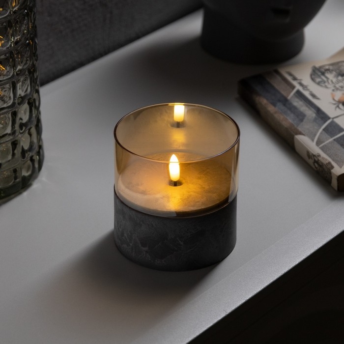 Светодиодная свеча золотистая, 10 × 10 × 10 см, пластик, стекло, батарейки ААх2 (не в комплекте), свечение тёплое белое