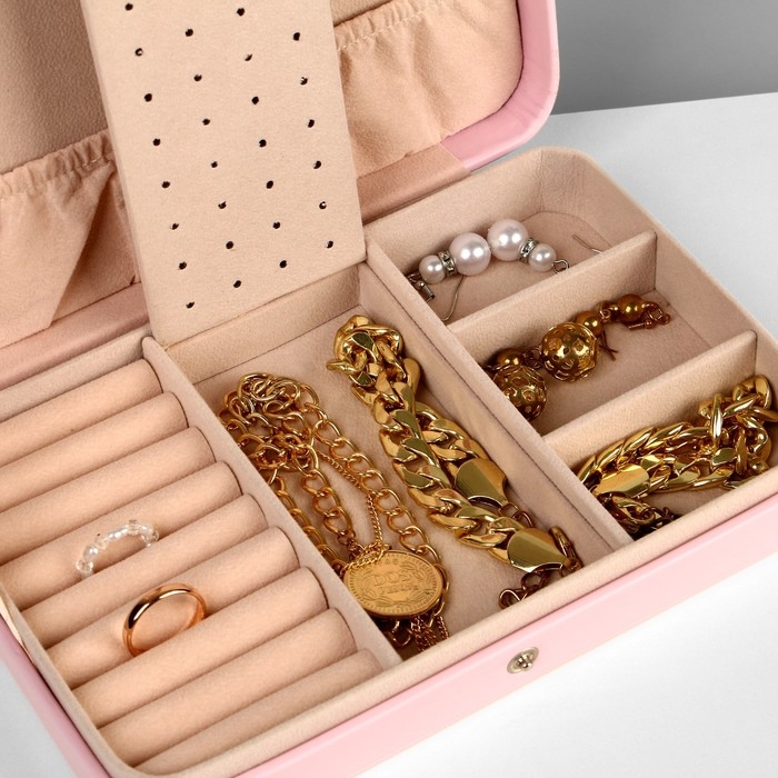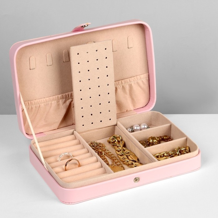 Органайзер для украшений «Шкатулка портативная», 8 полос, 3 места, 14×21×4,5 см, цвет розовый