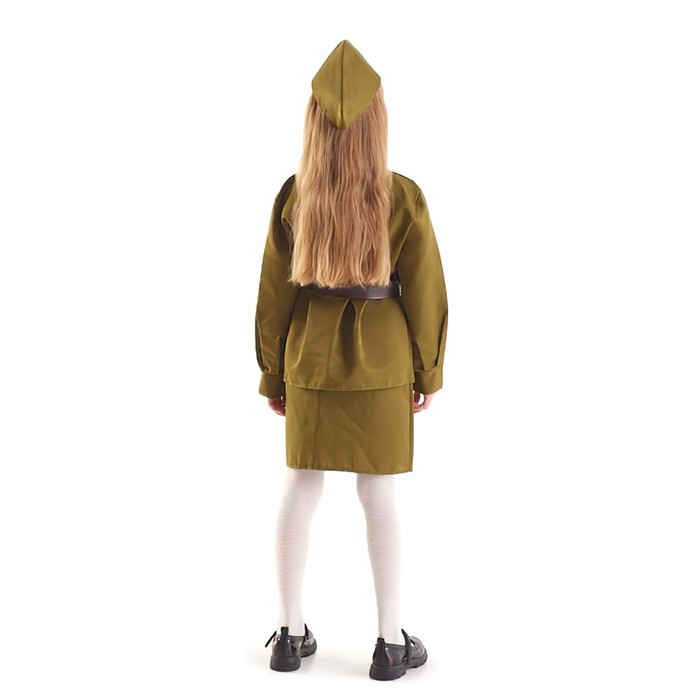 Костюм военного «Солдаточка», гимнастёрка, ремень, пилотка, юбка на резинке, 8-10 лет, рост 140-152 см