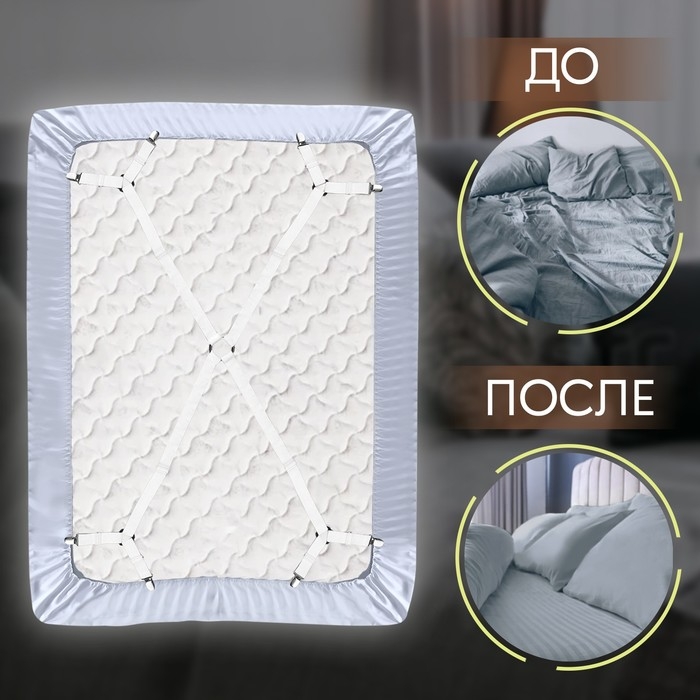 Зажимы на резинке, с регуляторами, на 4 угла, 2 × 240 см, цвет белый