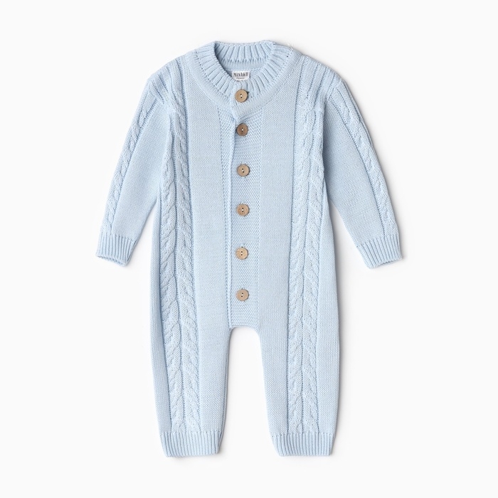 Комбинезон детский с шапочкой вязаный MINAKU, рост 92-98, цвет голубой