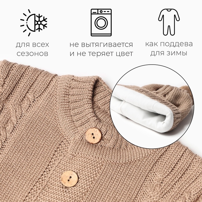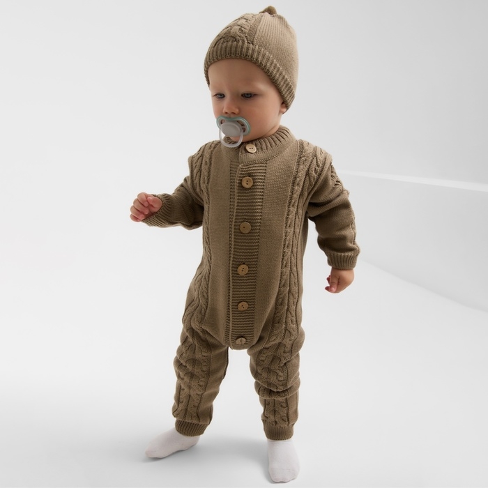 Комбинезон детский с шапочкой вязаный MINAKU, рост 68-74, цвет коричневый