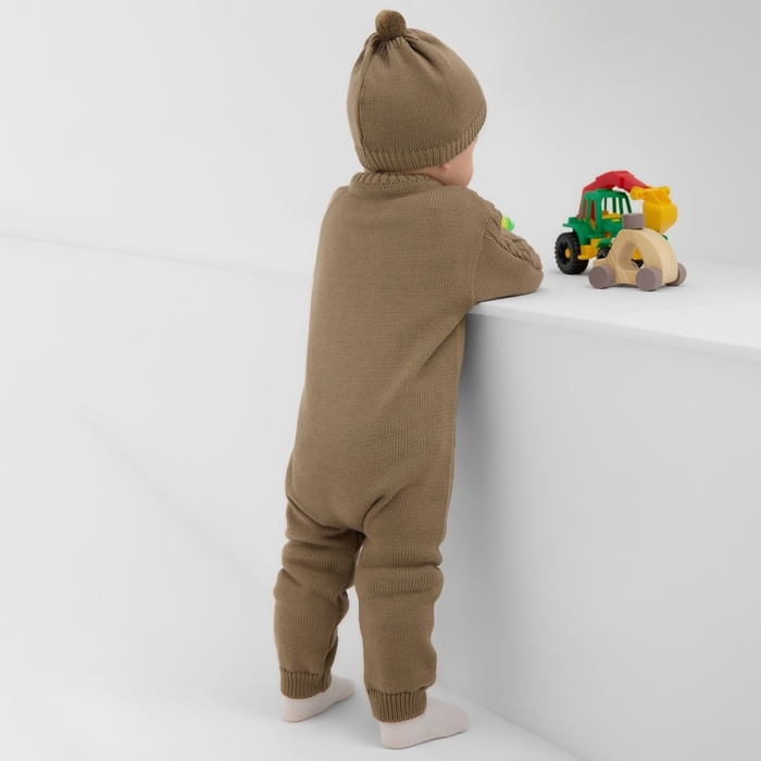 Комбинезон детский с шапочкой вязаный MINAKU, рост 80-86, цвет коричневый