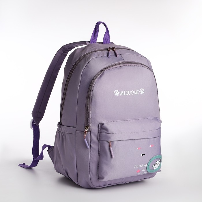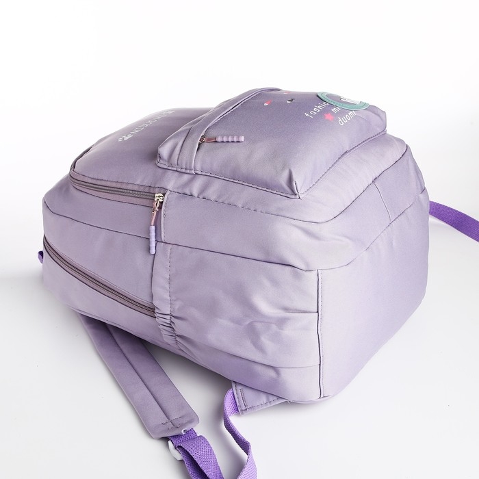 Рюкзак школьный из текстиля 2 отдела на молнии, 3 кармана, цвет сиреневый