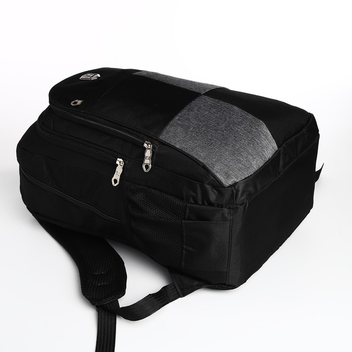 Рюкзак школьный из текстиля, 2 отдела, 4 кармана, цвет чёрный