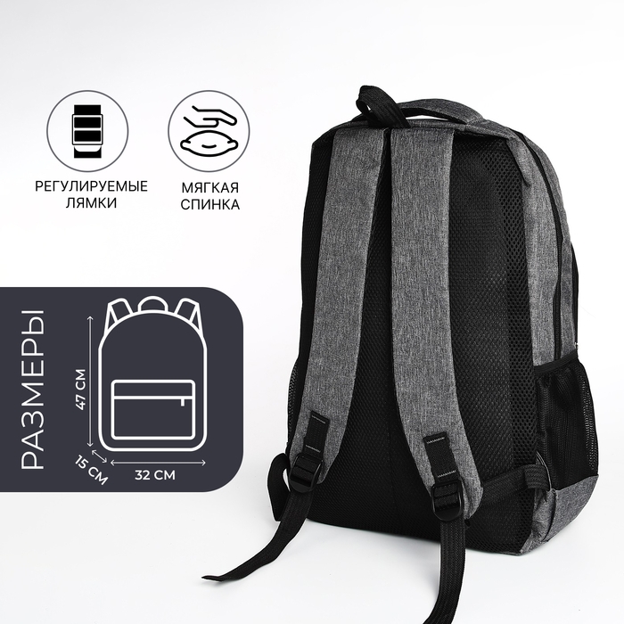 Рюкзак школьный из текстиля, 2 отдела, 4 кармана, цвет серый