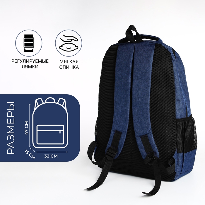 Рюкзак школьный на молнии, 4 кармана, цвет синий