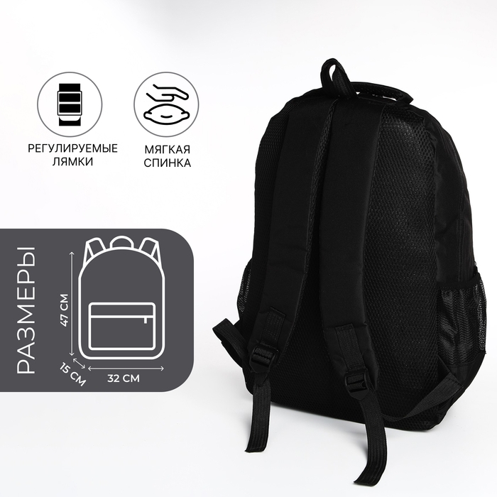 Рюкзак школьный на молнии, 4 кармана, цвет чёрный