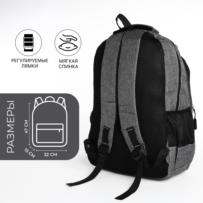 Рюкзак школьный на молнии, 4 кармана, цвет серый