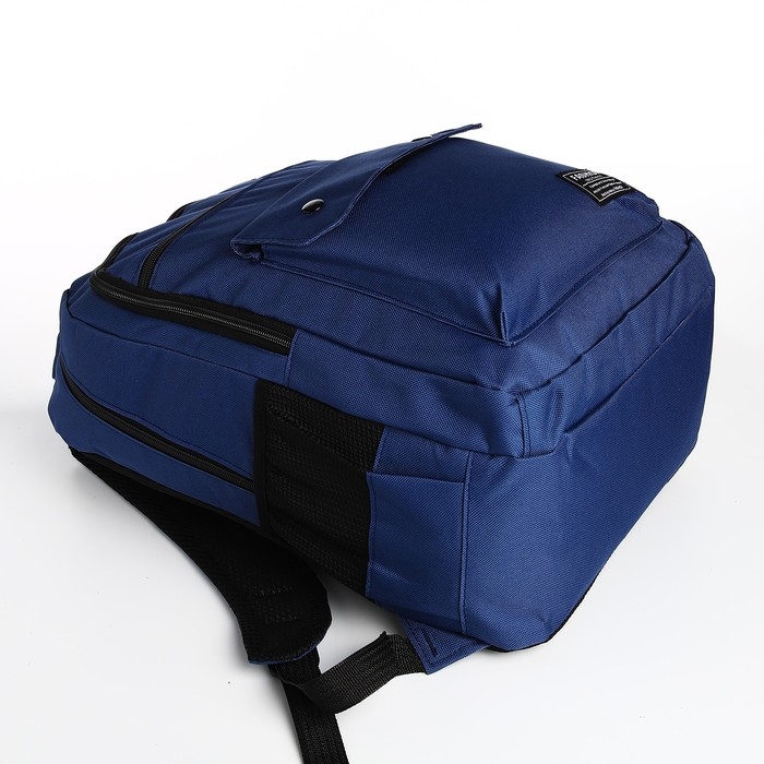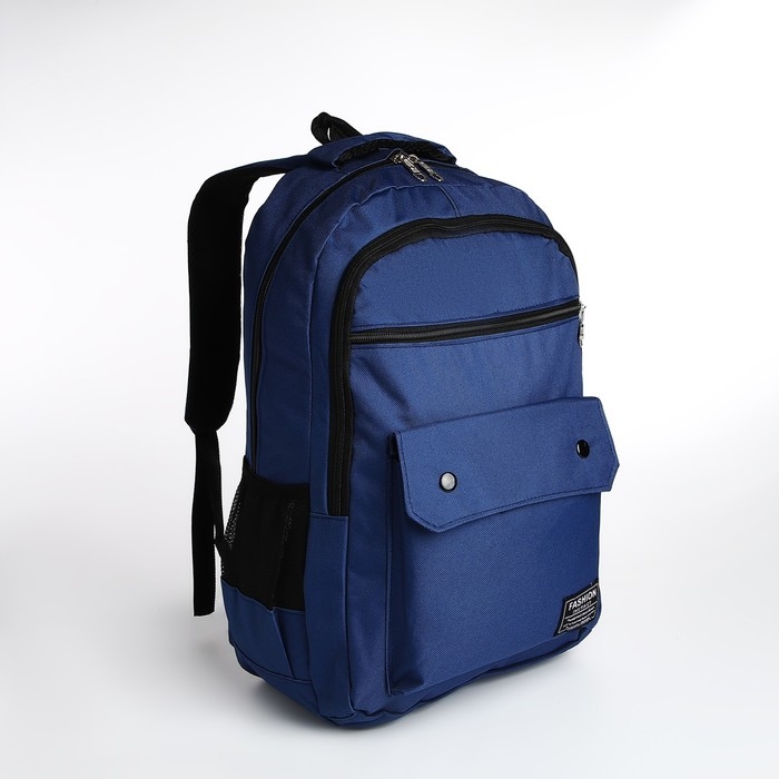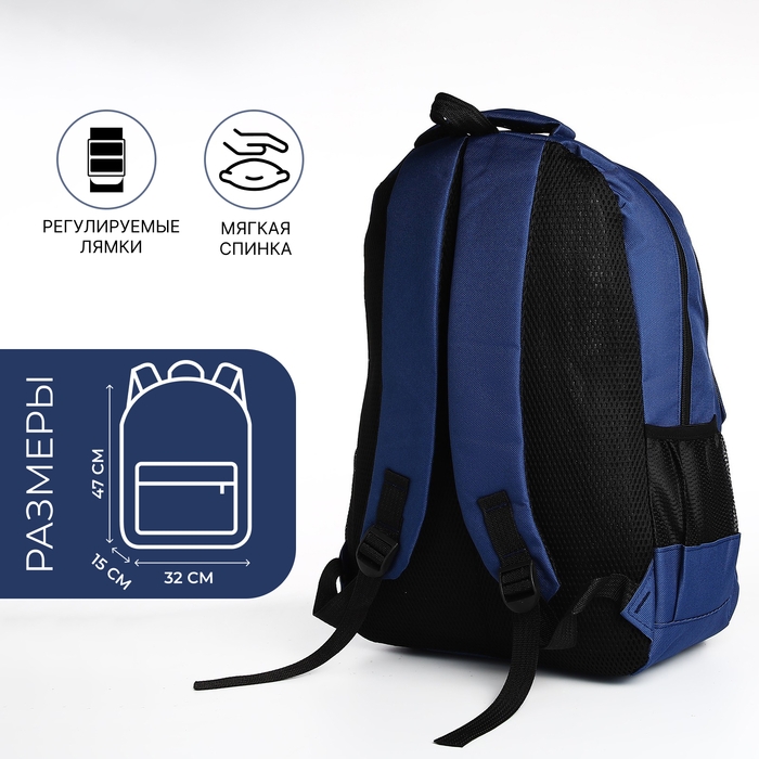 Рюкзак школьный на молнии, 2 отдела, 4 кармана, цвет синий