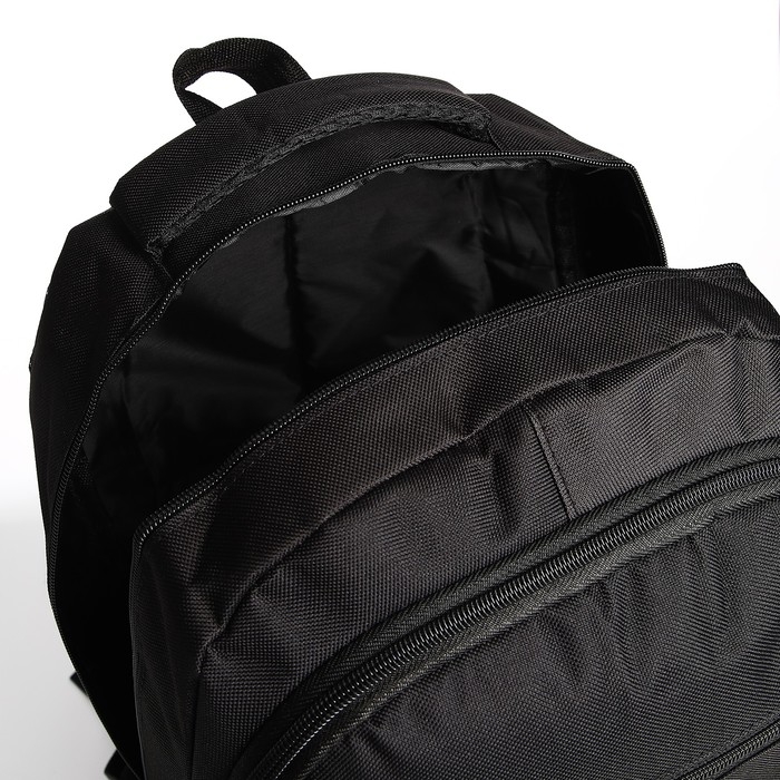 Рюкзак школьный на молнии, 2 отдела, 4 кармана, цвет чёрный