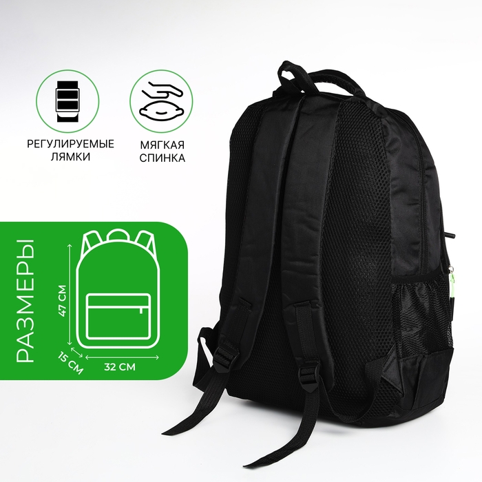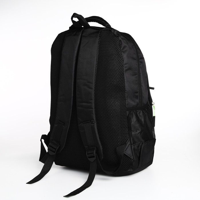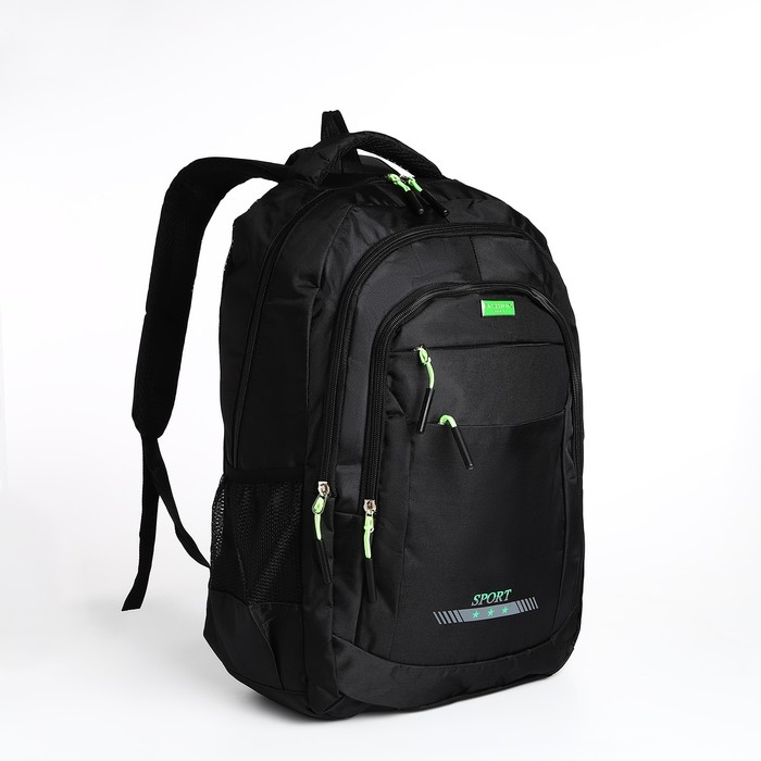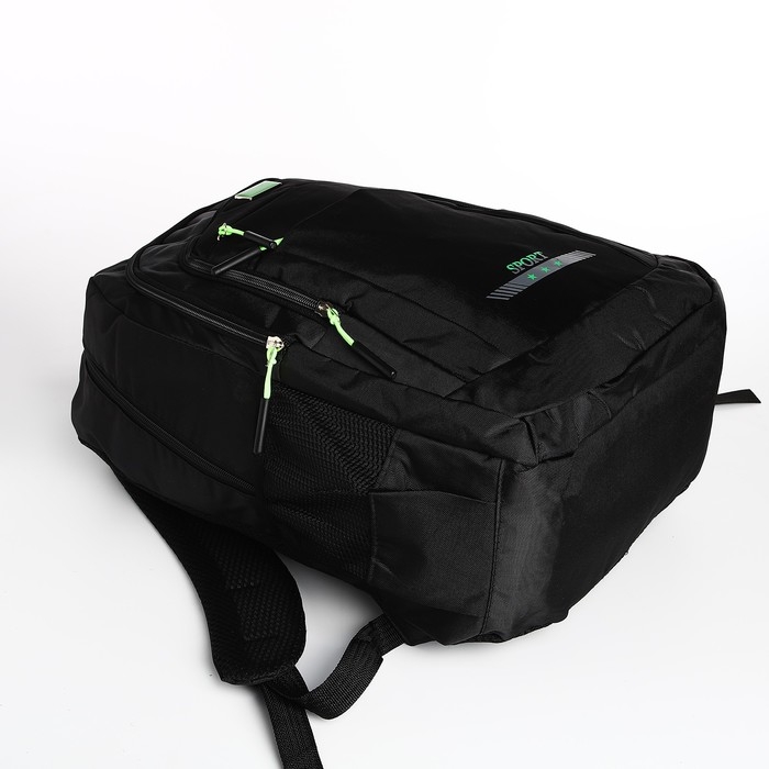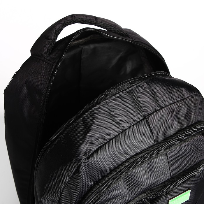 Рюкзак мужской на молнии, 4 наружных кармана, цвет чёрный/зелёный