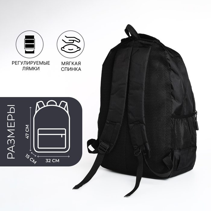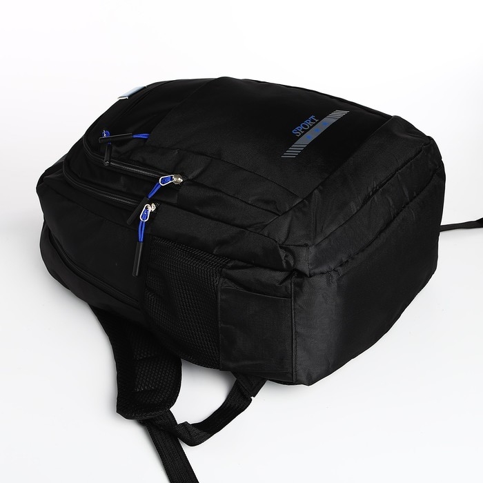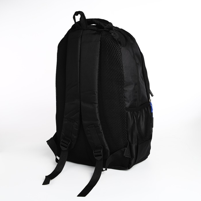 Рюкзак мужской на молнии, 4 наружных кармана, цвет чёрный/синий