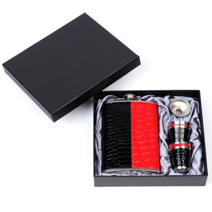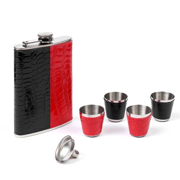 Подарочный набор 6 в 1 "Дубль": фляжка 270 мл, воронка, 4 рюмки, 17 х 17 см