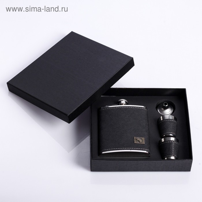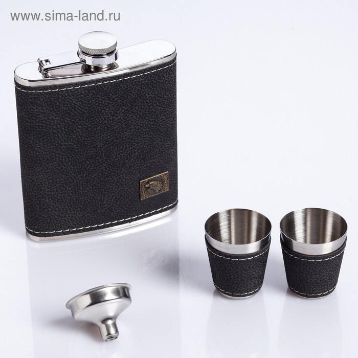 Подарочный набор 4 в 1 "Орел": фляжка 210 мл, воронка, 2 рюмки, чёрный, 17 х 18 см