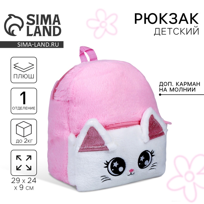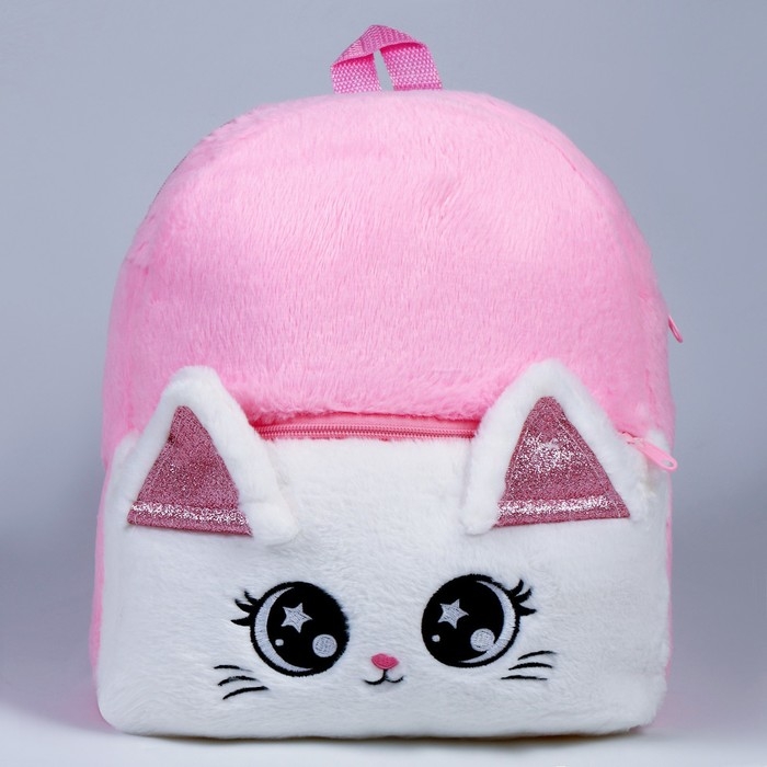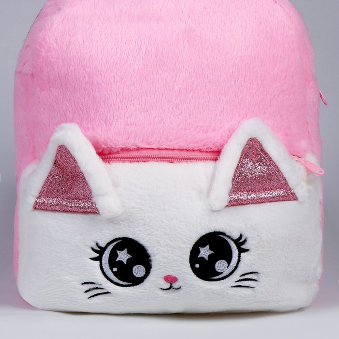 Рюкзак детский для девочки «Котик», плюшевый, цвет розовый