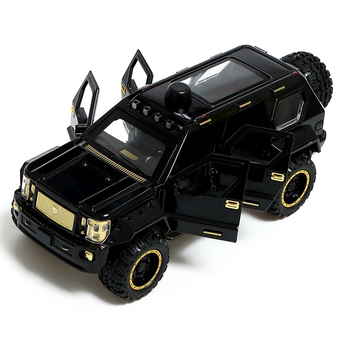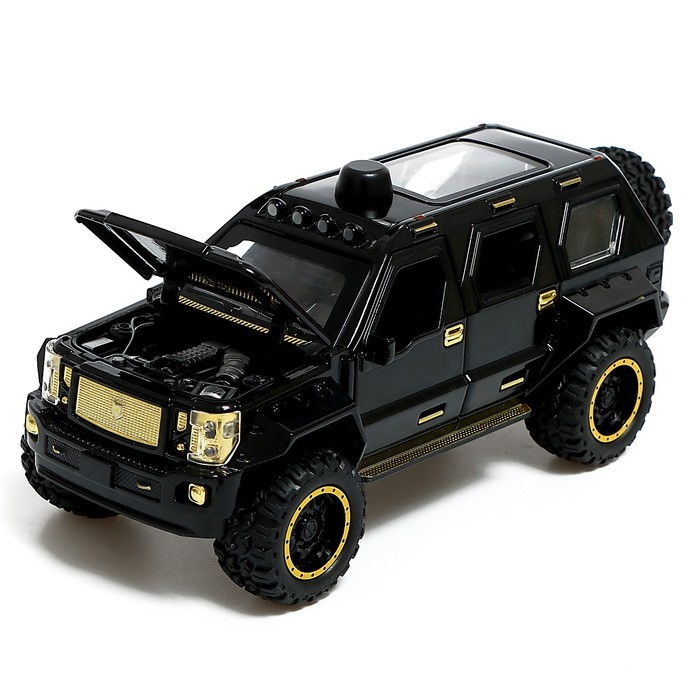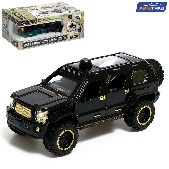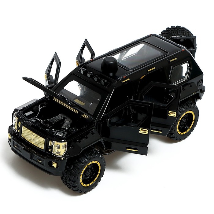 Джип металлический, 1:24, открываются двери, капот, багажник, инерция, цвет чёрный
