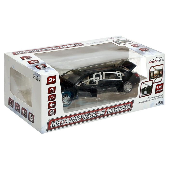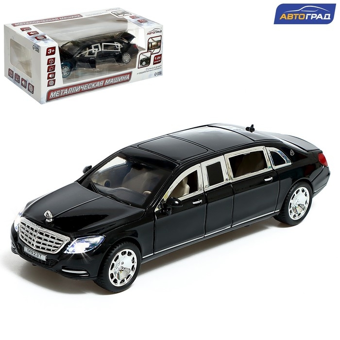 Машина металлическая «Лимузин», 1:24, открываются двери, капот, багажник, цвет чёрный