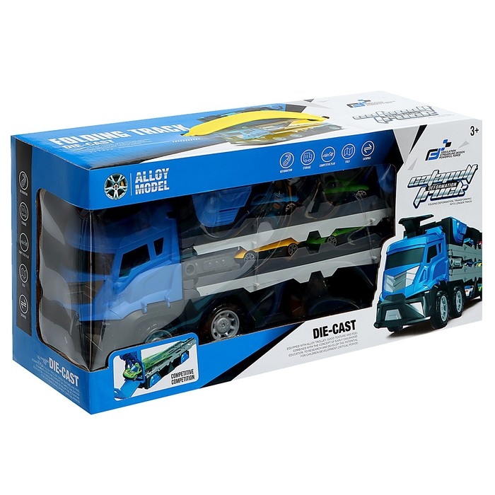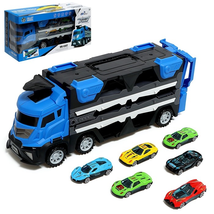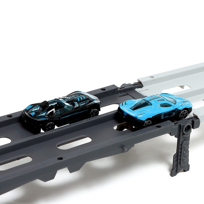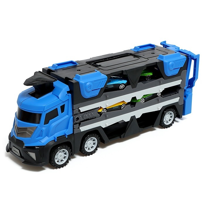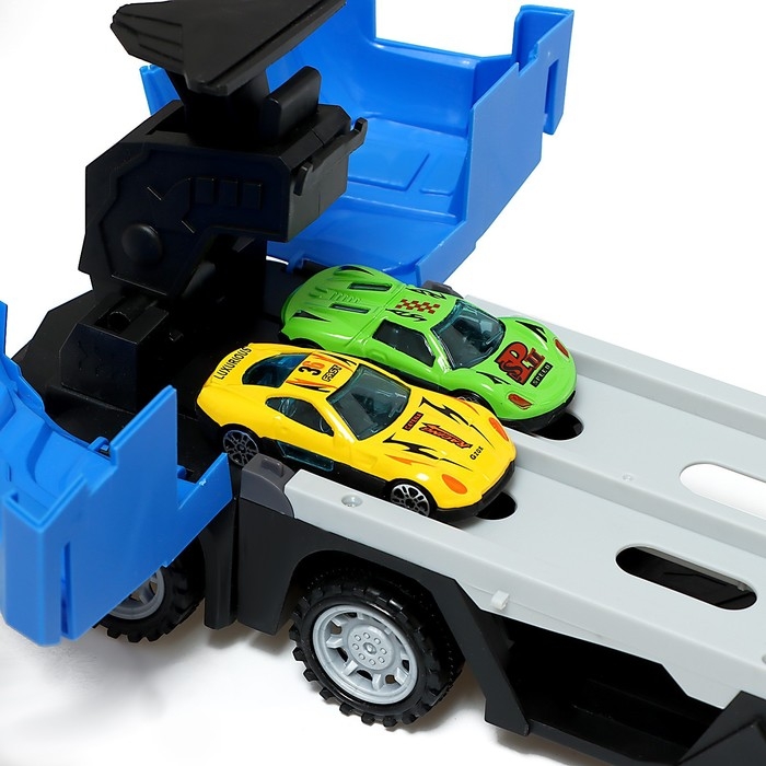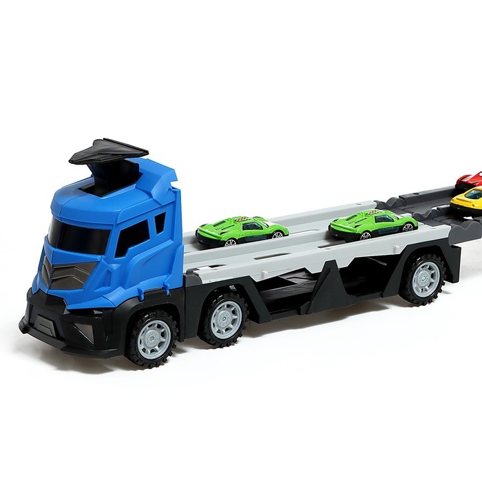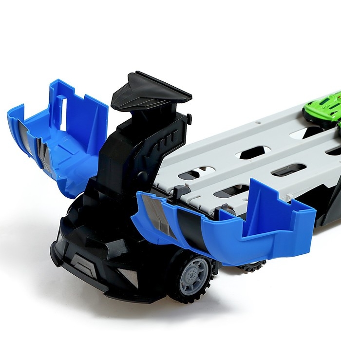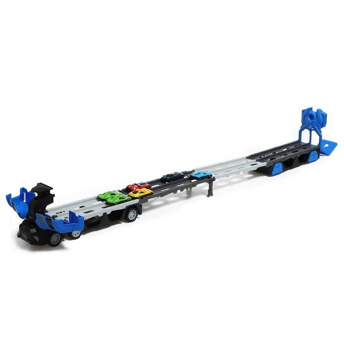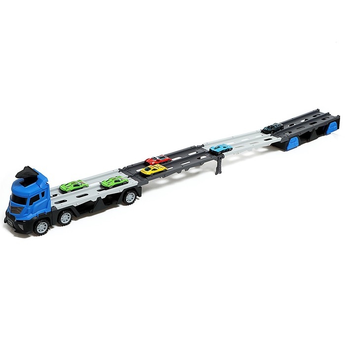 Парковка 2 в 1 Truck, 6 машинок, трансформируется в автотрек, звук, цвет синий