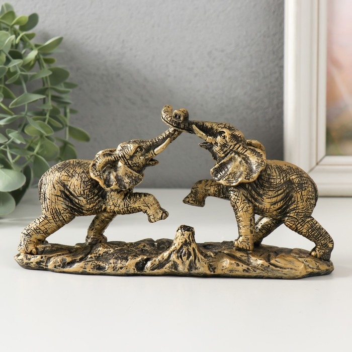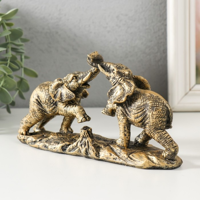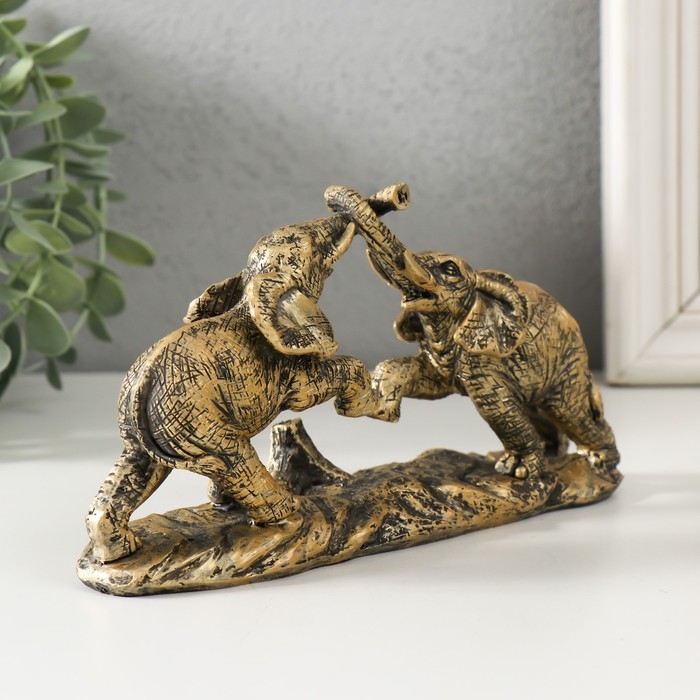 Сувенир полистоун "Игры слонов" под бронзу 19х5,5х9,5 см