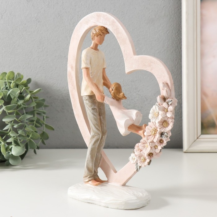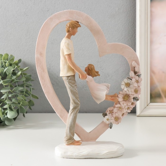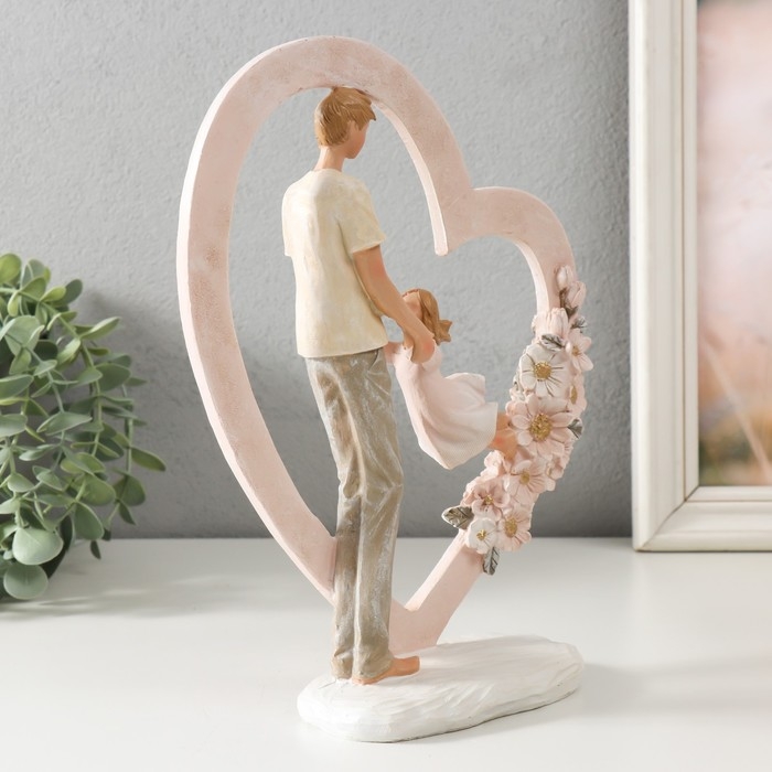 Сувенир полистоун "Папа с дочкой у сердца с цветами" 20х7,5х26 см