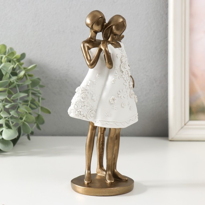 Сувенир полистоун "Две сестры в белых платьях с цветами" 9х7,5х21 см