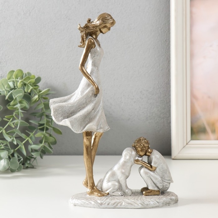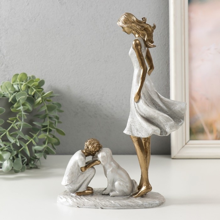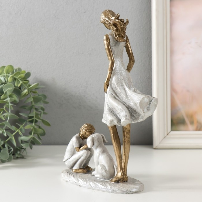 Сувенир полистоун "Мама и сын на прогулке с собакой" 16х7,5х24 см
