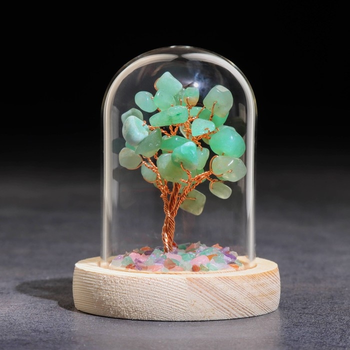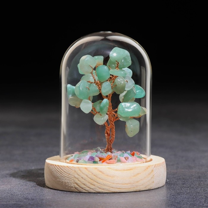 Сувенир в куполе "Дерево Энергии. Авантюрин зеленый", натуральный камень, 10 х 7 см